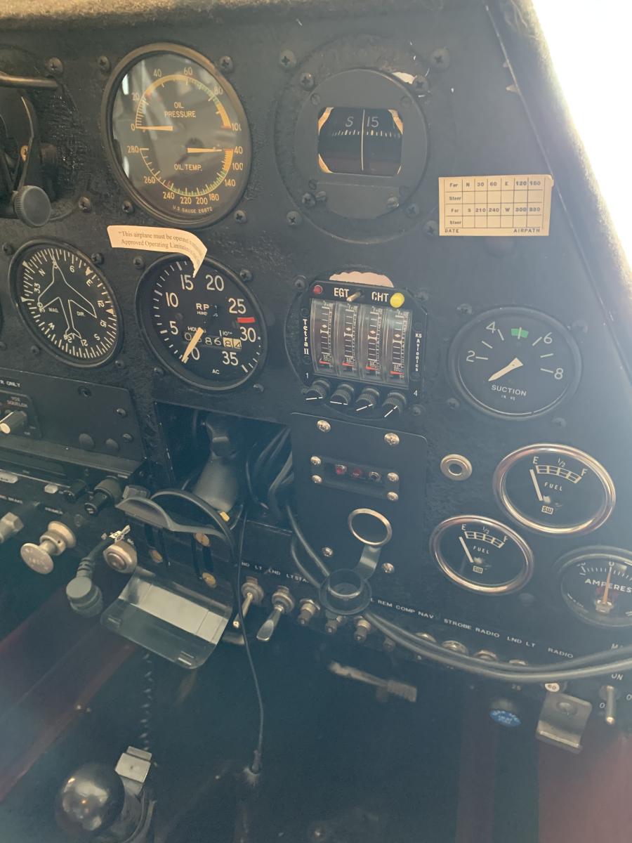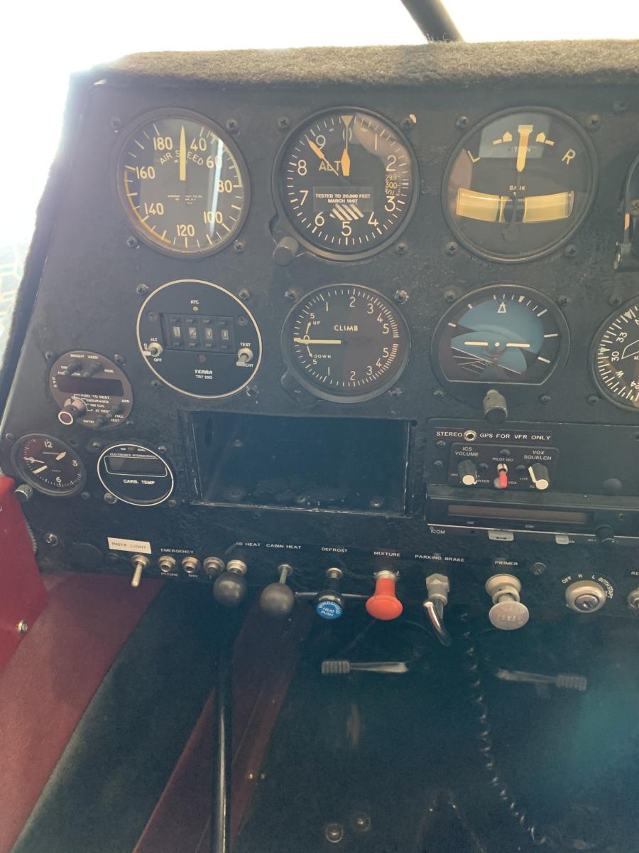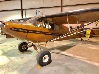 Gar Aero 8.50×10 tundra tires with Cleveland wheels and brakes, Dodge long range tanks, sight tube fuel indicators, extended baggage compartment upper and lower, digital fuel flow meter, all cylinders simultaneous EGT/CHT, (old analog style) 5-point restraint seat belt, Borer prop, PA 18 gear, flaps, and tail feathers Seaplane door Weld-on float fittings Whelen wing tip strobes and nav lights, Cessna front seat and floor tracks, rear seat under storage compartment Schneider penetration wheel skis and tail wheel ski. wired for GPS Terra transponder Icom digital flip fop radio intercom |