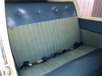 | Two-Tone Blue Cloth and Blue Leather seating and sidewalls with Blue sheepskin covered crew seats and Navy Blue Carpeting. Bench style back seat, Shoulder Harness System for front seats only. | |