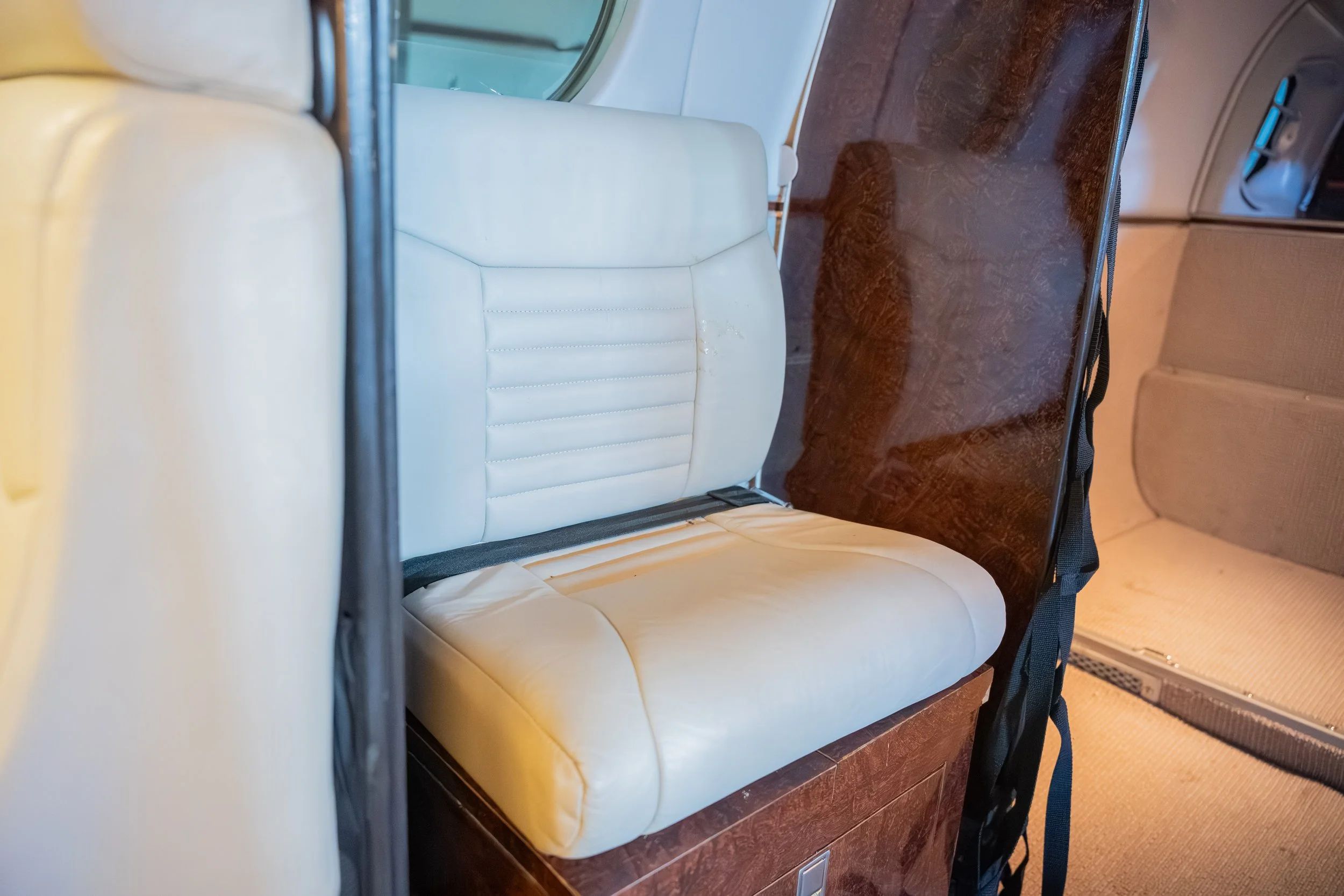 8-Passenger Executive Seating Right Side 2-Place Side Facing Divan Left Side Forward Single Aft Facing Seat 4-Place Club Group Mid Cabin Belted Flushing Potty Seat Refinished 2017 |