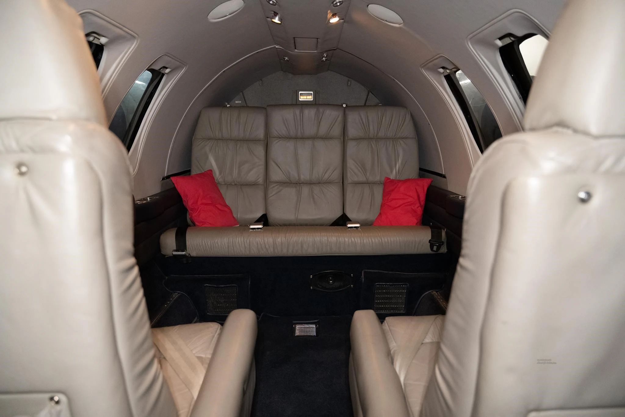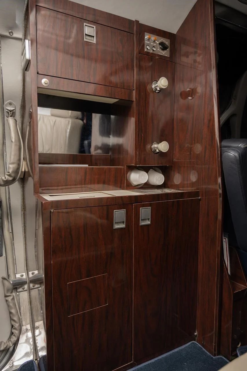 EROS O2 masks Rosen sun visors 2 Crew plus 6 passengers 3 place Aft divan seat Refreshment center Mapco coffee pot |
