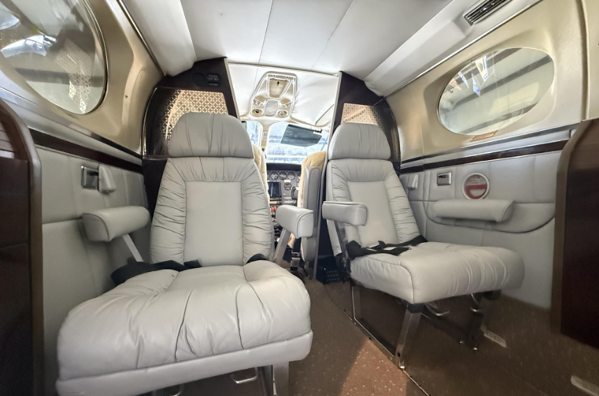Number of Seats 7 Lavatory Yes Interior Notes Executive Club Seating with Light gray Leather matching Side panels off white headliner, light brown Carpet and Wood trim and cabinets, and cabin dividers |