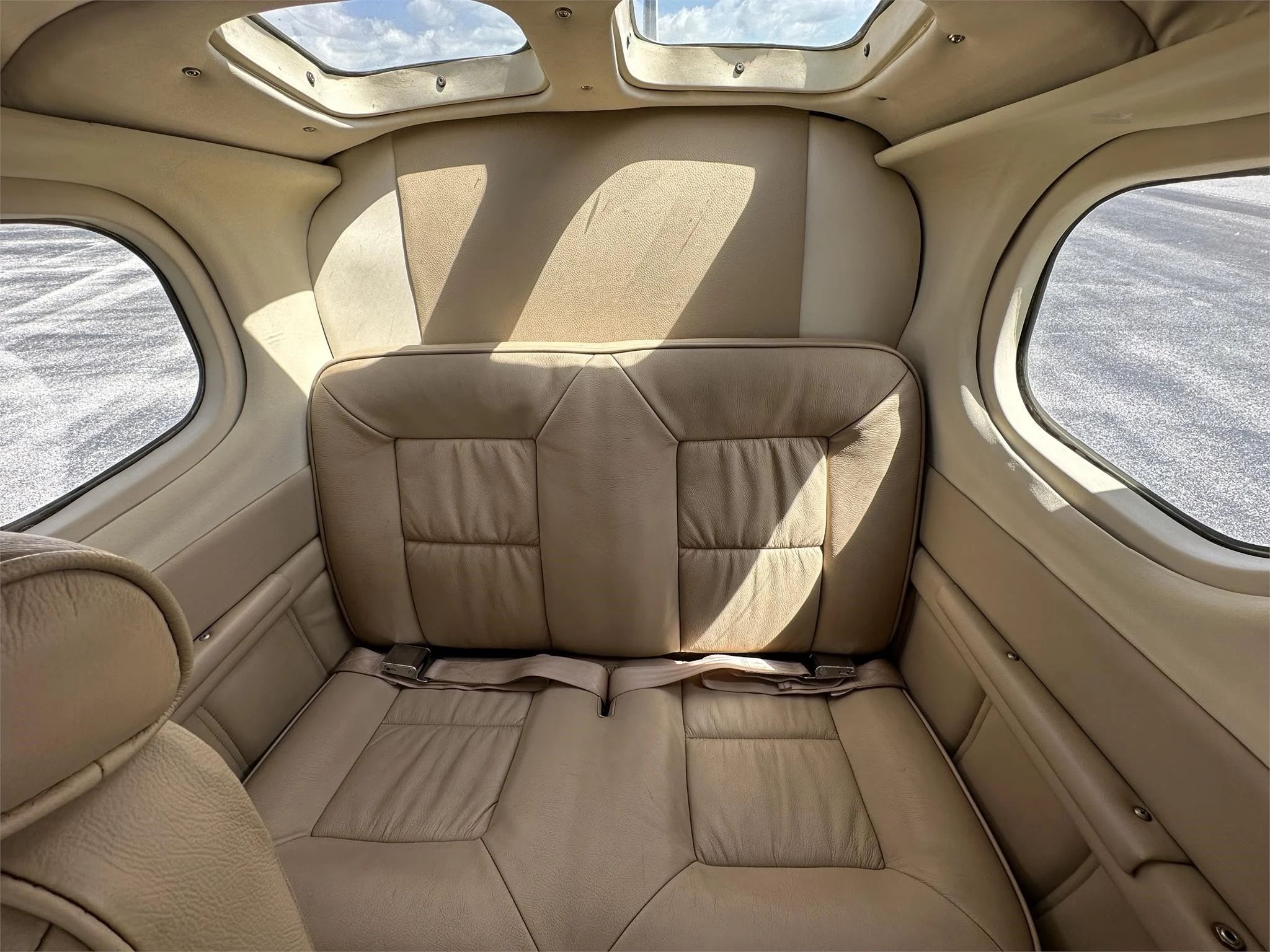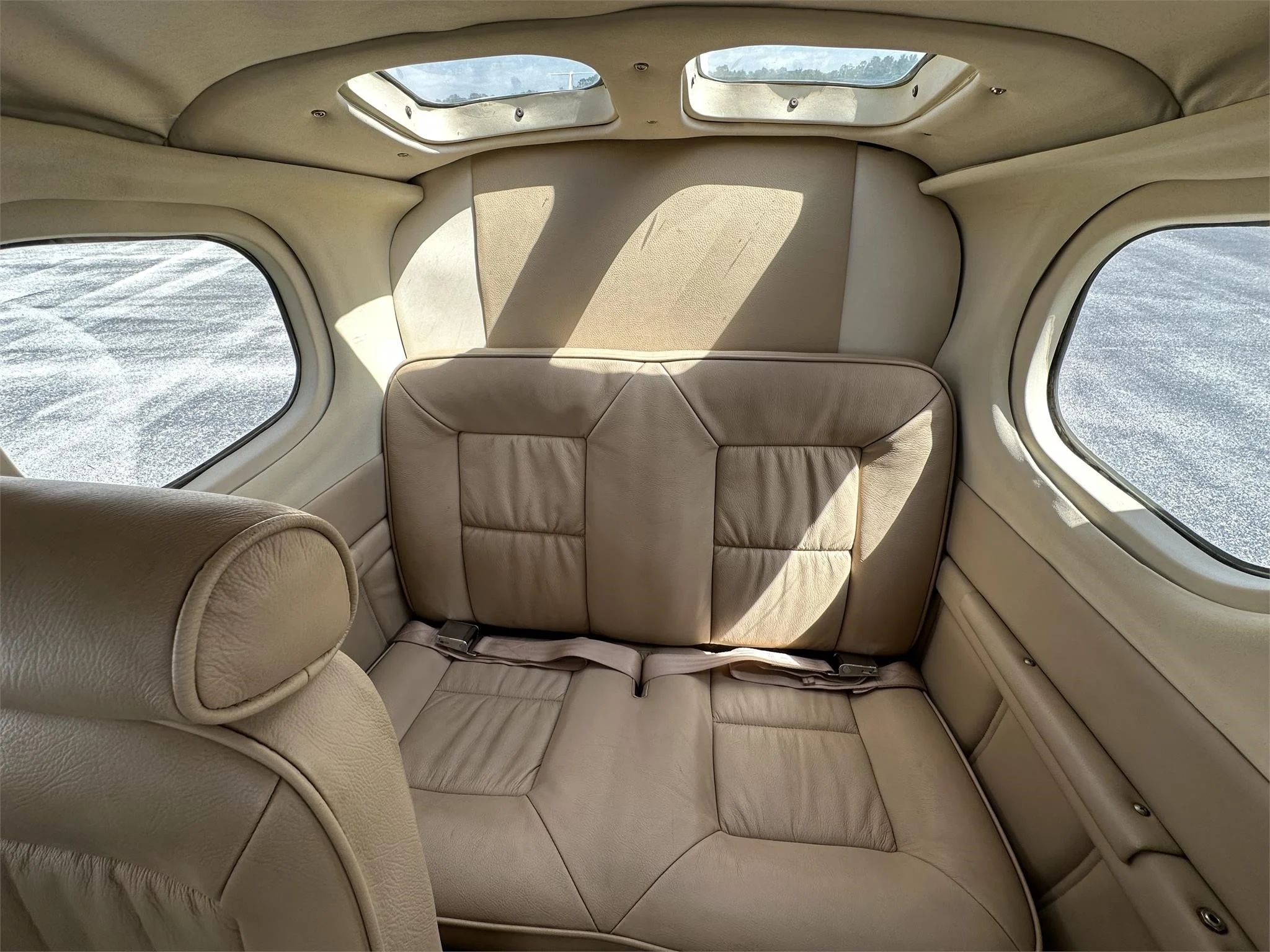 Beige Leather Interior in Good Condition Articulating & Vertically-Adjusting Pilot & Co-Pilot Seats w/ Headrests Front Seat Shoulder Harnesses Articulating Middle Row Seats w/ Headrests |
