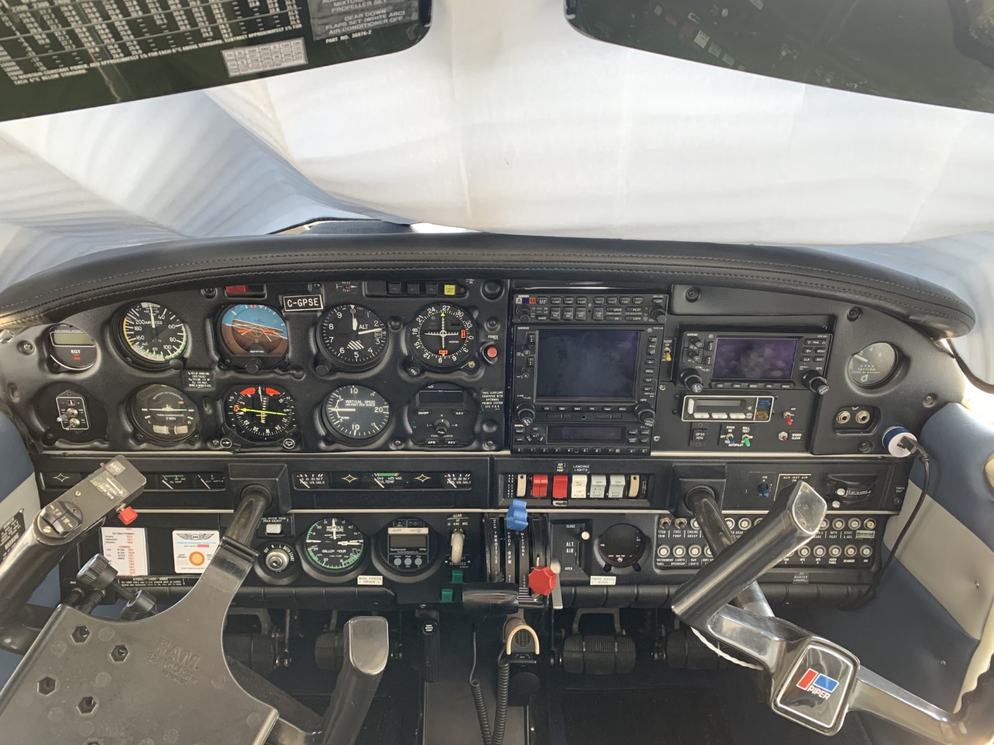 Garmin GNS 530W GPS/NAV/COM #1 displays on the Bendix / King KCS-55A Compass System KI-525A HSI Garmin GNS 430W GPS/NAV/COM #2 displays on the Garmin GIA 106A Nav Indicator Garmin GMA 340 Audio Panel Garmin GTX 327 Transponder S-TEC Autopilot System 40 interfaced with GNS 530W and King KI-525A HSI S-TEC ST-901 GPSS Roll Steering Converter interfaced with S-TEC System 40 and GNS 530W S-TEC Autopilot System 60 PSS interfaced with the King KI-525A HSI and GNS 530W S-TEC Automatic Electric Pitch Trim L3 Stormscope WX-500 displays on the GNS 530W and the GNS 430W J.P. Instruments EDM-700 engine monitor J.P. Instruments FlowScan fuel flow sensor interfaced with the J.P.I. EDM-700 and the Garmin GNS 530W Horizon Instruments P1000 Digital Electronic Tachometer ACK Technologies E-04 406 ELT, Avionics master switch Electronics International E-1 Primary EGT, Astro Tech LC-2P Electronic Clock |