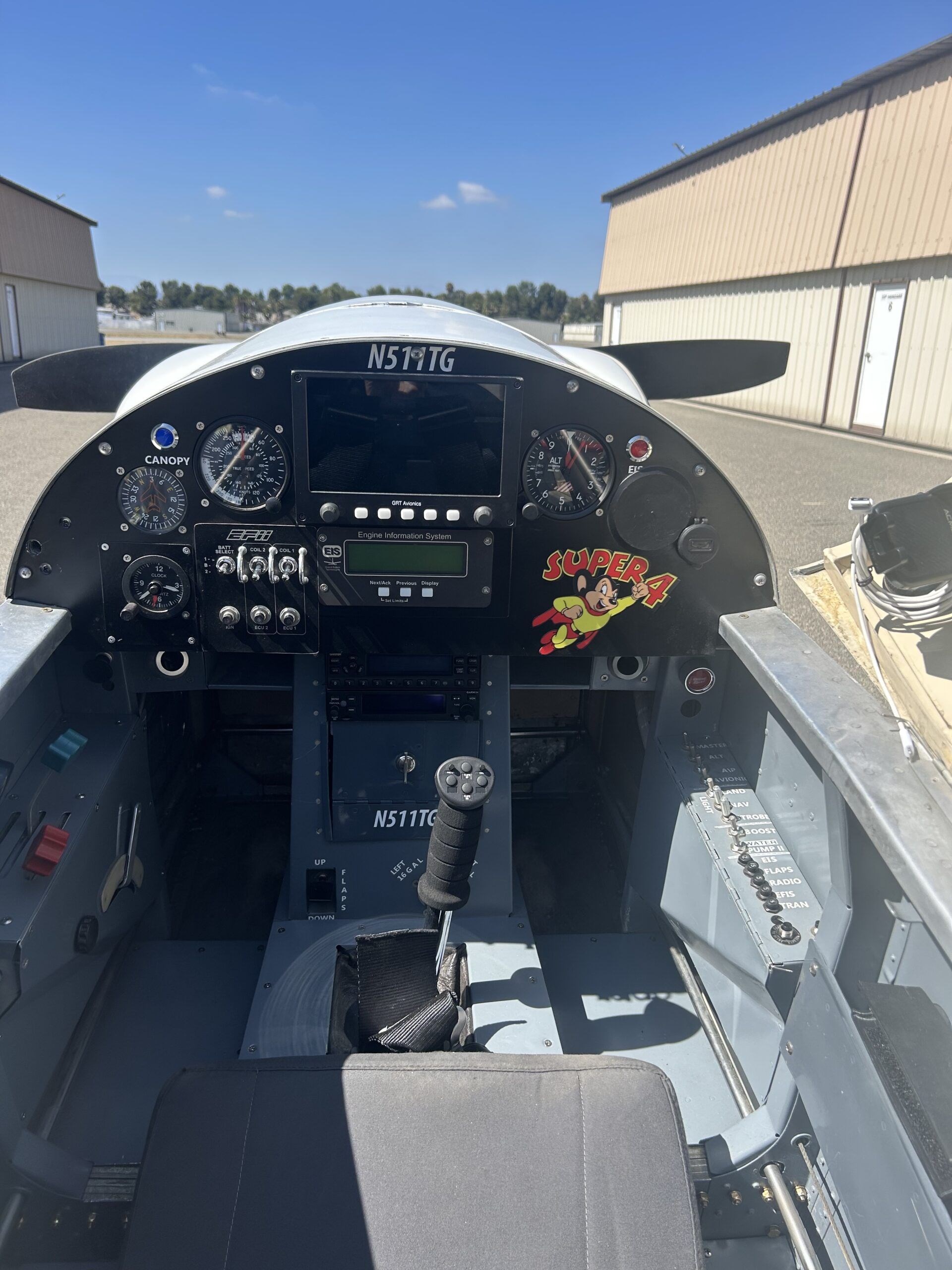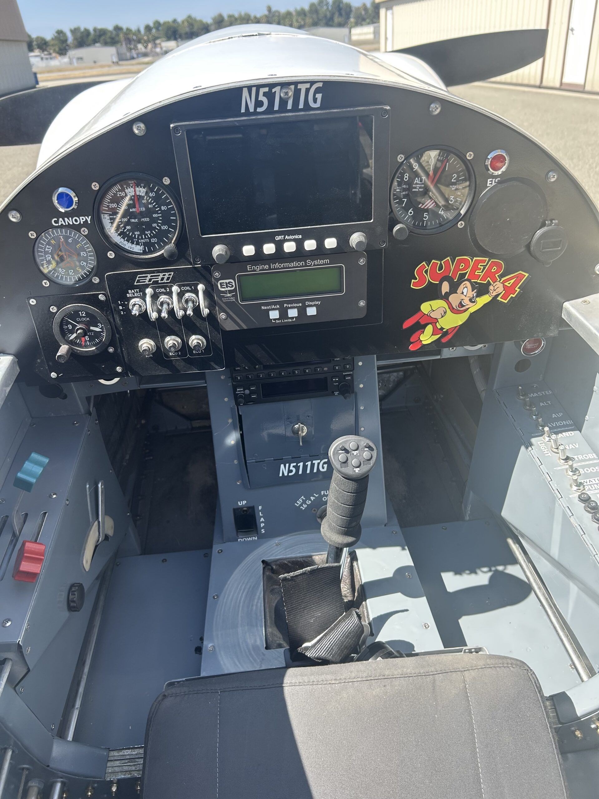 GRT Sport EX EFIS/PFD/MFD with Traffic, Weather, and Engine Display GRT EIS 4000 Engine Monitor with EGT, CHT, and Red Cube Fuel Flow Transducer GRT 2-Axis Autopilot Garmin GTX-327 Mode C Transponder Garmin GTR 200 Radio and Intercom uAvionix Echo UAT with Safe Fly GPS, echoALT, and ADSB In/Out |