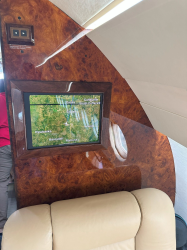 Total of 14 passenger - beige leather fireblocked interior. Forward 4 seats plus mid-cabin 4 place conference grouping, dual aft 3-place couches in rear cabin with large fold-up table, cockpit jumpseat; Full-service galley w/coffeemaker, hot meal & ample storage; Pullout executive tables; Brand new front, mid and rear14-inch HD cabin display monitors with new AirText+ Moving Map and GoGo L3 WiFi, Aft full-service lavatory, Cabin Entertainment System, Gold Plated fixtures. All wood in medium Walnut veneer, wood in excellent condition. All brand-new Wool top-quality carpet, and new single-piece headliner, window panels and shades done in Ultraleather, all new cockpit seats completely refurbished, new LED cabin lights just installed and all seats completely re-dyed and upgraded and both couches recovered in all top-quality leather with new baggage compartment grosspoint. Eight new cabin USB charging ports and 110v outlets just installed. New Interior June 22, 2023! |