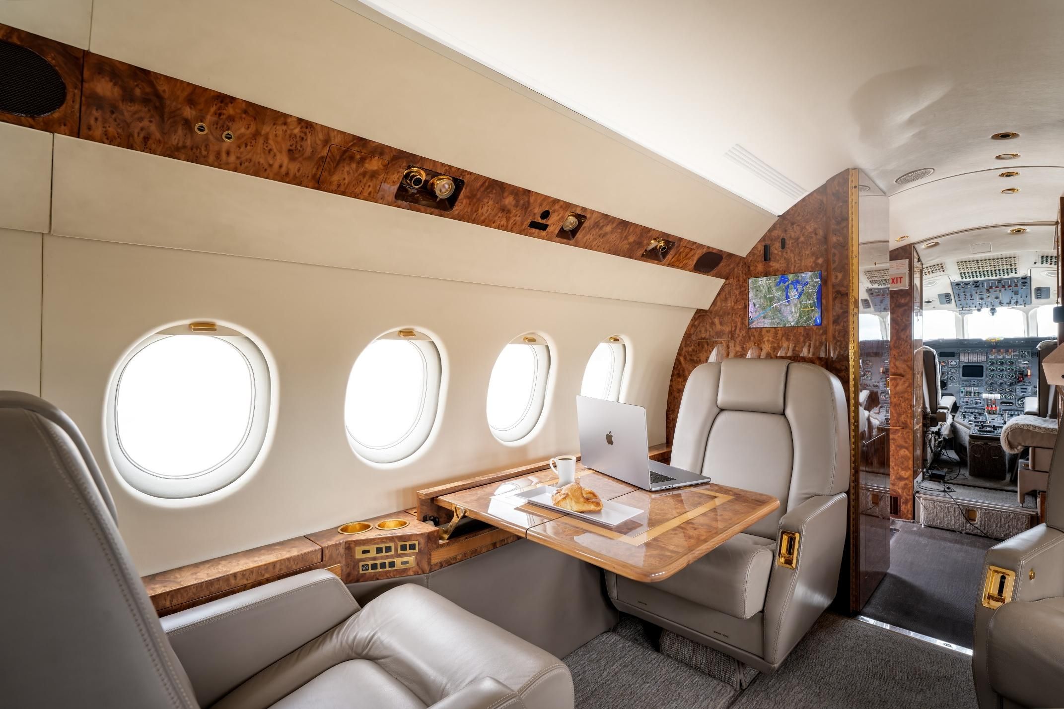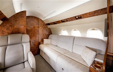 Refurbished 2019 12 Passenger configuration Spacious open layout Aft Lavatory Forward Galley with warming oven, microwave oven, coffee service Electric lay flat executive chair Birthable Divan Airshow 500 LED lighting GoGo ATG 4000 Wifi |