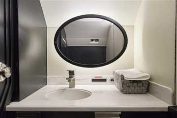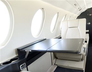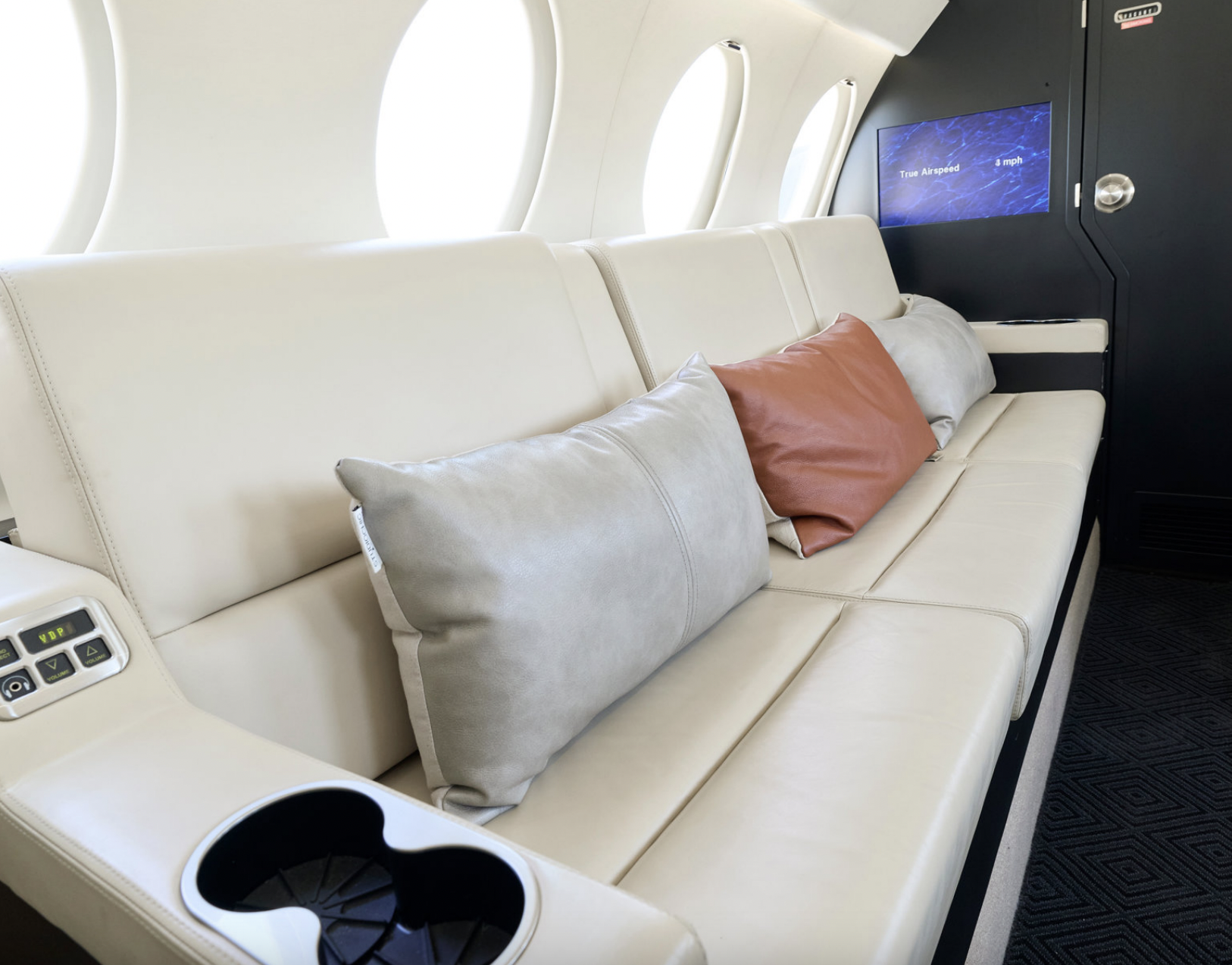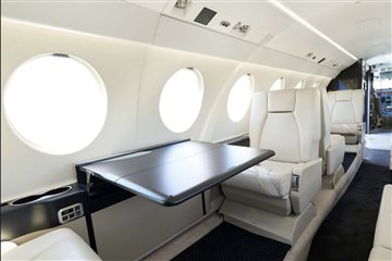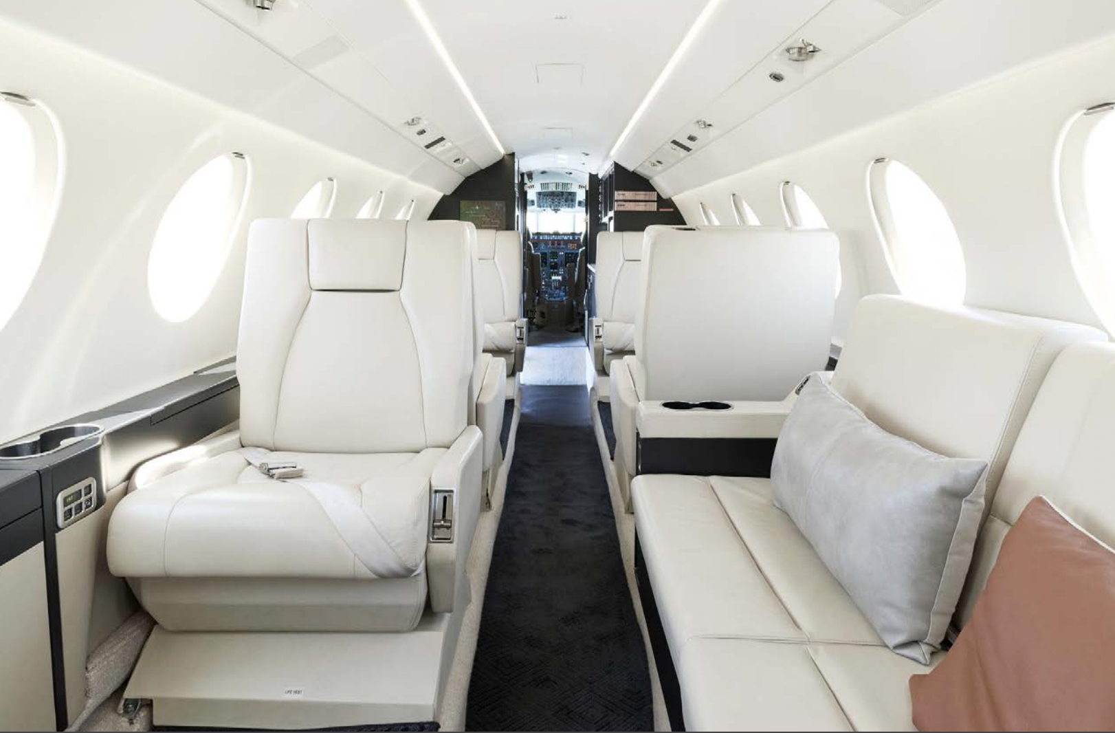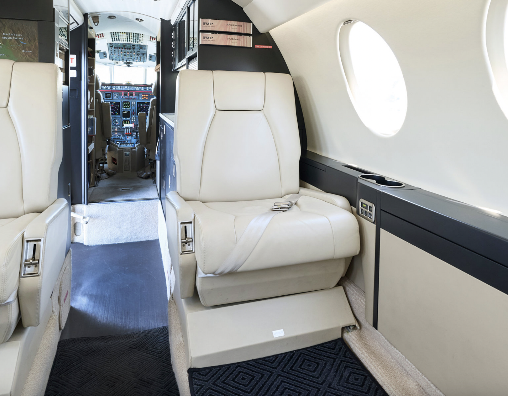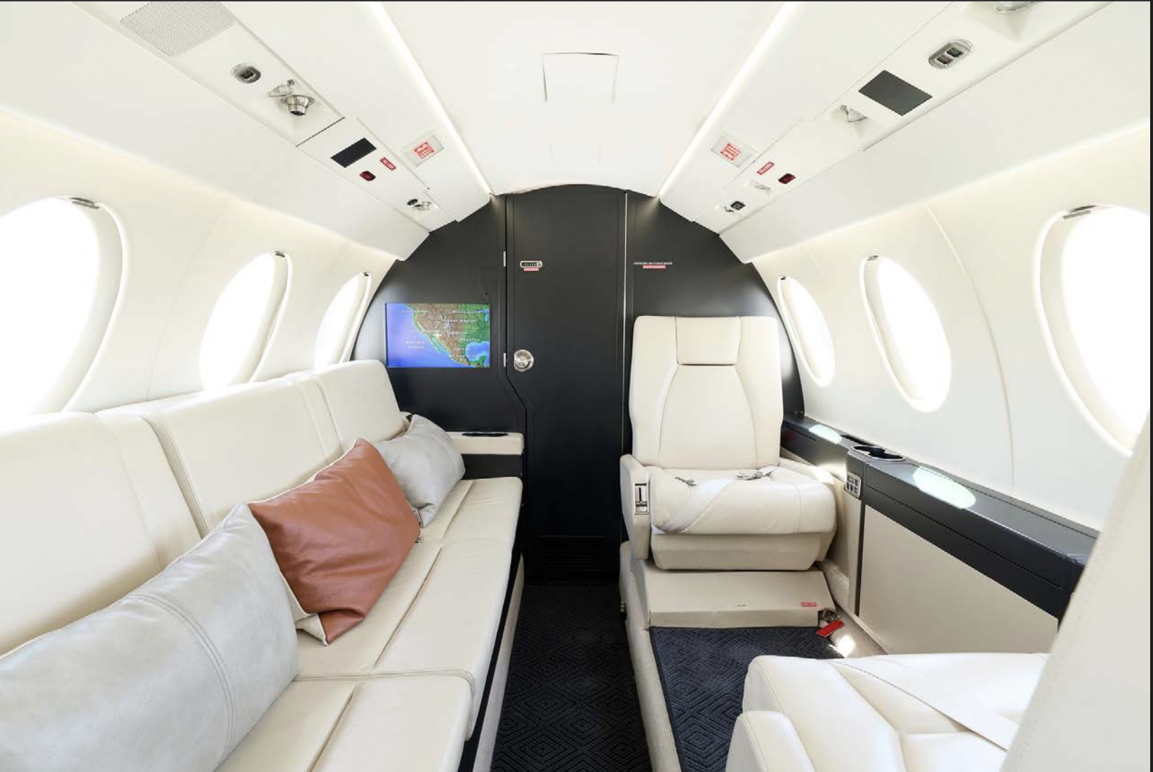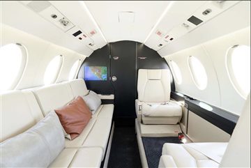 interior refurbished in 2024 Configuration/PAX: Executive/10 passengers Seating: Beige leather seating, forward 4-place club, aft 2-place club & 3-place fabric divan, crew jumpseat Headliner: Neutral toned headliner Sidewalls: Neutral toned sidewalls Carpet: Neutral toned carpeting Refreshment:Right side forward galley w/Corian countertops, TIA WaveJet microwave oven, Keurig Entertainment: Forward left side entertainment cabinet, Audio International stereo w/infrared remote, Rosen video system w/infrared remote, Rosen plug-in video system w/six receptacles & four monitors, Airshow Genesys cabin/flight deck display, Sony Audio International stereo headset, DVD player, Rosen 14-inch LCD forward bulkhead monitor Business :Collins PCD-3000 personal computer data loading system, dual AirCell handsets, AirCell Gogo Biz w/ATG-4000 broadband internet w/Text & Talk, Wi-Fi Accessories: LED lighting, side ledges w/built-in iPhone holders & USB charging ports, satin nickel finish hardware, SAFT auxiliary DC power, seat covers, forward pocket sliding doors Lavatory: Aft lav w/Corian countertops & round vanity mirror |