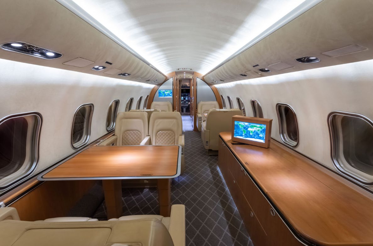 This ten(10) passengerfloor plan features three distinct passenger cabin areas and a crew rest area.