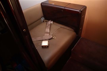 Max Passengers - 9 Cabin is overall Brown with Swirl Walnut wood veneer with Polished Almond Gold hardware. (Soft Goods Refurbished 8/14/2018) |