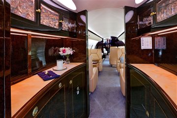 Thirteen(13) passengerfloor plan features threedistinct passenger cabin areaswith an forward galley and both forward and aft lavatories. Crew Rest. Jump Seat.