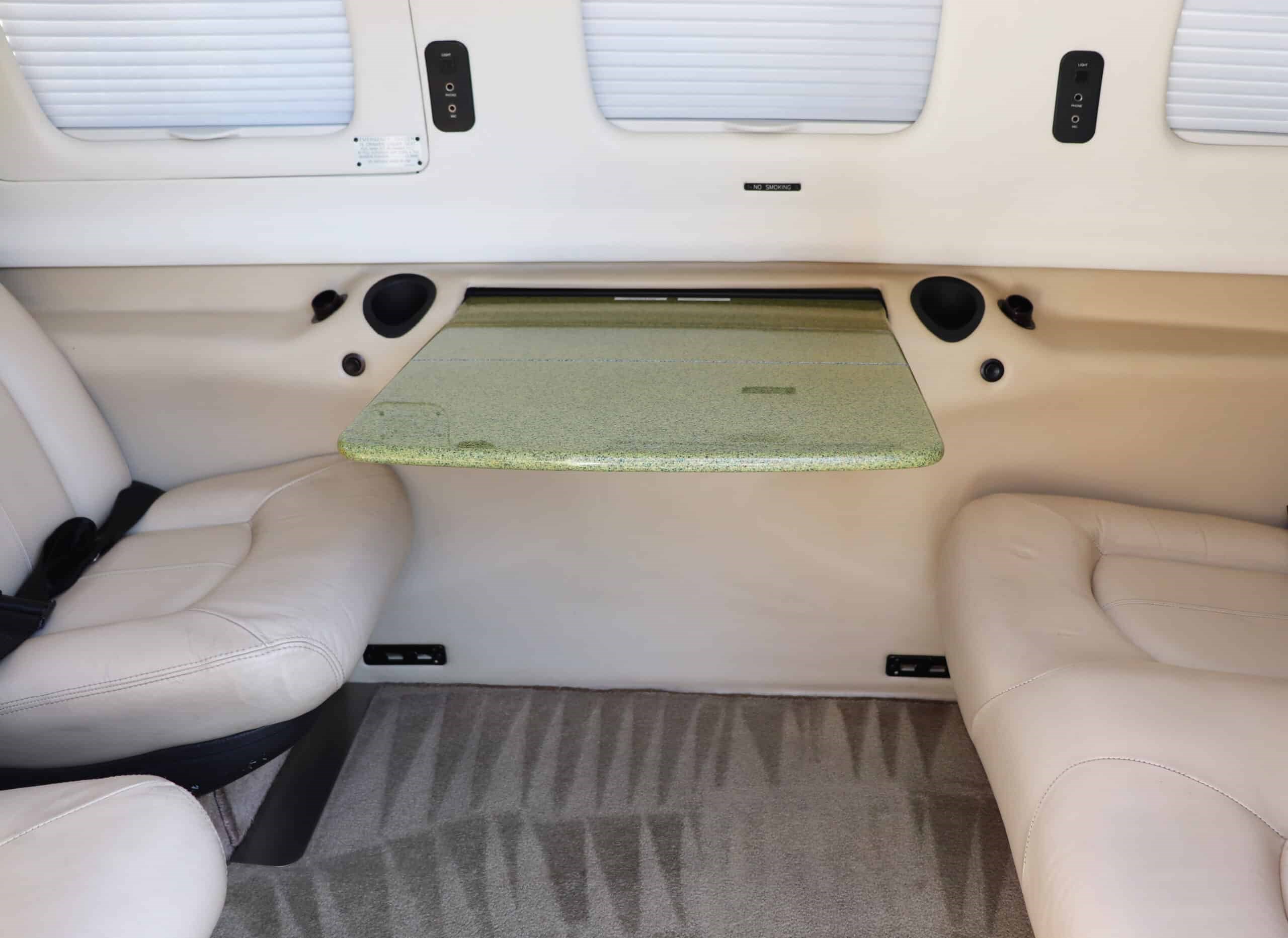 GW Increase Mod Pilot’s Side Heated Windshield Emergency Oxygen System Air Conditioning Garmin GSB15 USB Charging Ports Avionics Master Switch LoPreseti Boom Beam Landing Lights Whelen Orion LED Position & Anti-Collision Lights Electric Pitch Trim Rudder Trim Dual Toe Brakes Dual Push-to-Talk Switches Dark Khaki Leather Seating Refreshment Console Built-In Executive Writing Table Reading Lights, Armrests & Seat Pockets Pleated Window Shades Air Conditioning Outlets Reading Lamps and Headset Jacks |