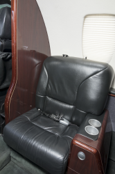 and right hand forward side facing seat. The interior is overall black and gray. Black gloss laminate with brushed aluminum hardware.