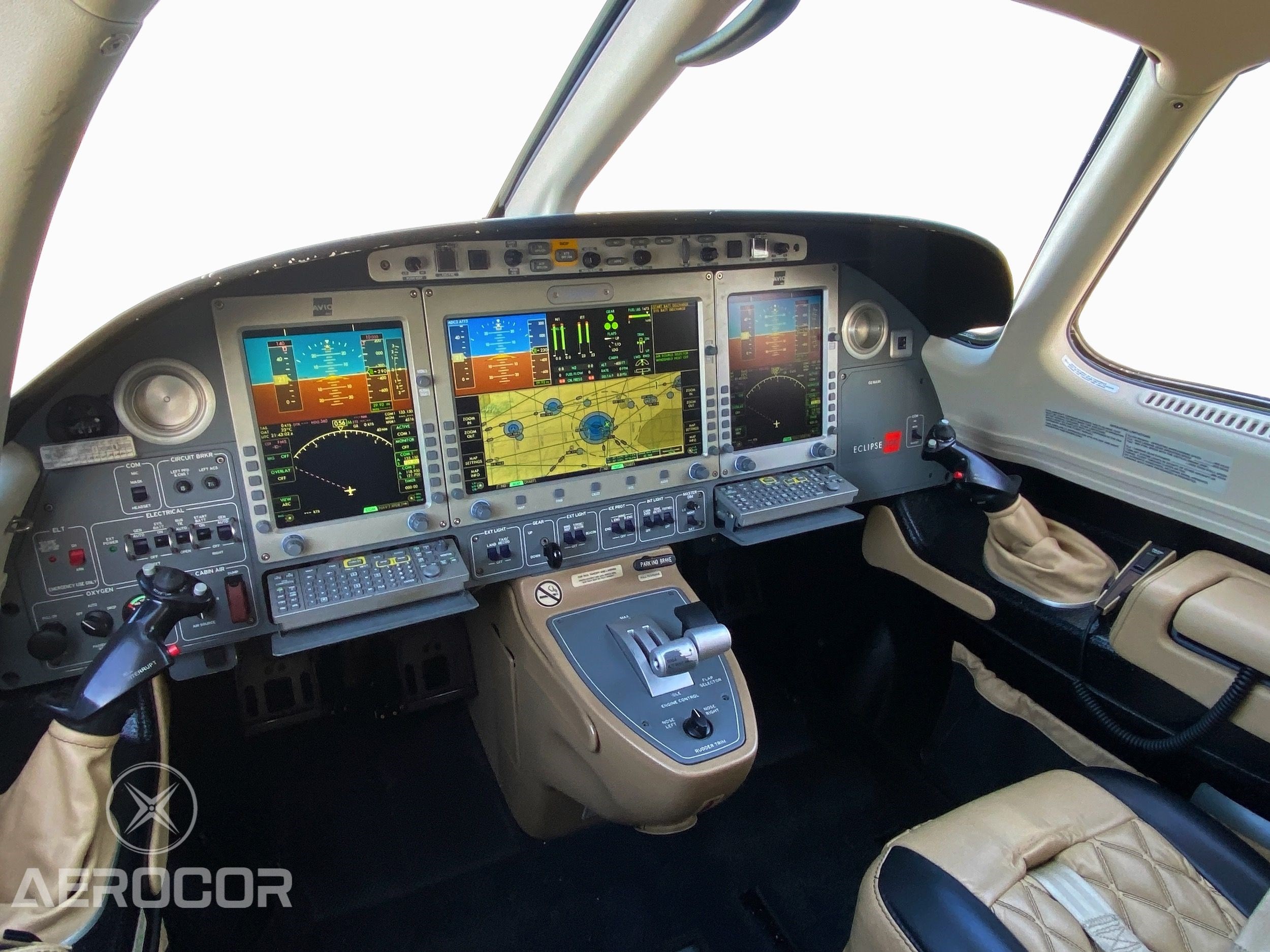 Integrated Flight Management System (IFMS) v2.08 by IS&S Standard features include: Two Primary Flight Displays (PFDs) One 15” Multi-Function Display (MFD) with airliner-style synoptic displays of all aircraft systems Color Weather Radar XM satellite Downlink Weather Geo-Referenced Jeppesen Approach Plates Fully Coupled Autopilot (Including Coupled LPV Approached) Flight Into Known Icing (FIKI) |
