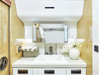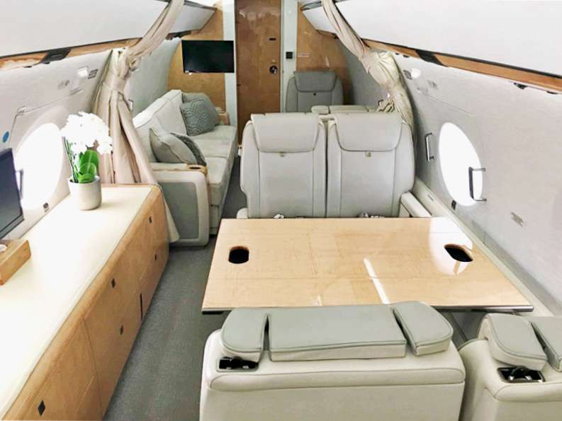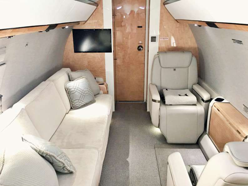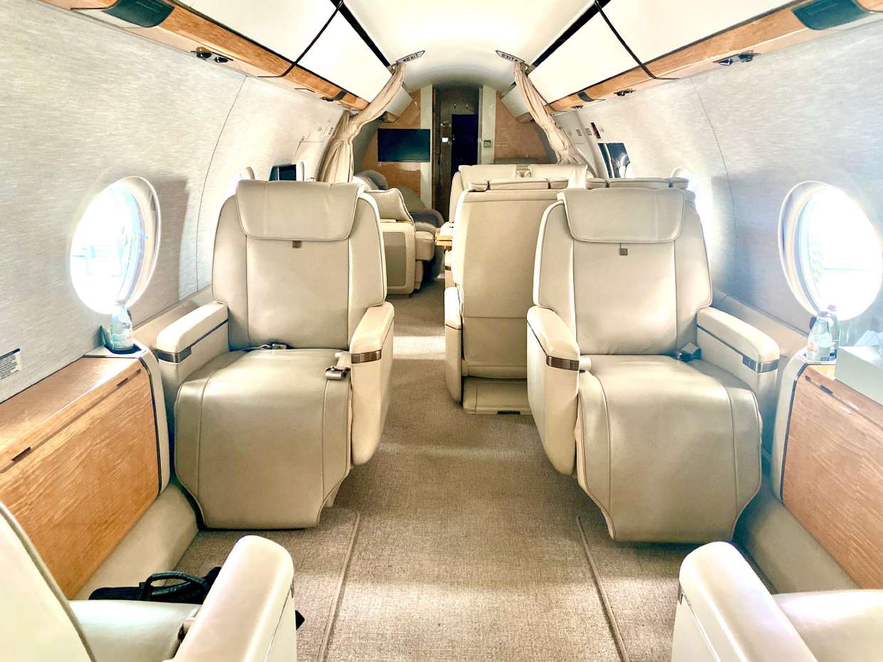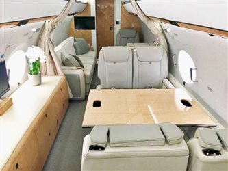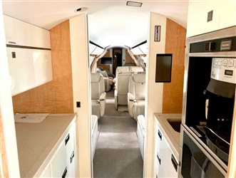 Configuration: Thirteen (13) Passengers Design: Elite Interior Galley Location: Forward Lavatory Location: Forward & Aft Fwd Cabin: Four (4) Club Seats with Fold-Out Tables Mid Cabin: 4-Place Conference Group Opposite a Credenza Aft Cabin: Two (2) Club Seats with Fold-Out Table Opposite a 3-Place Divan Entertainment: Monitor in Aft R/H Cabin Bulkhead, Eight 9-Inch LCD Personal Monitors and Dual DVD Players Connectivity: Aircell Iridium Satellite Telephone System, WLAN & SATCOM |