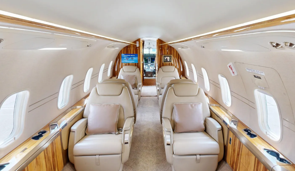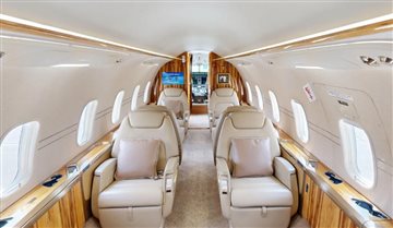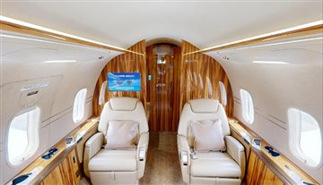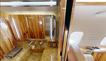 General information Original Completion at Bombardier Completion Center, Montreal, Canada, August 2014 Fireblocked, (FAA and TCCA) Nine (9) passenger seating including the belted lavatory seat Baggage compartment is located aft of the lavatory Galley Forward RH galley Cabin The cabin features eight (8) executive seats (double club) with three executive foldout tables and one insertable table Lavatory Also featured is an aft lavatory |