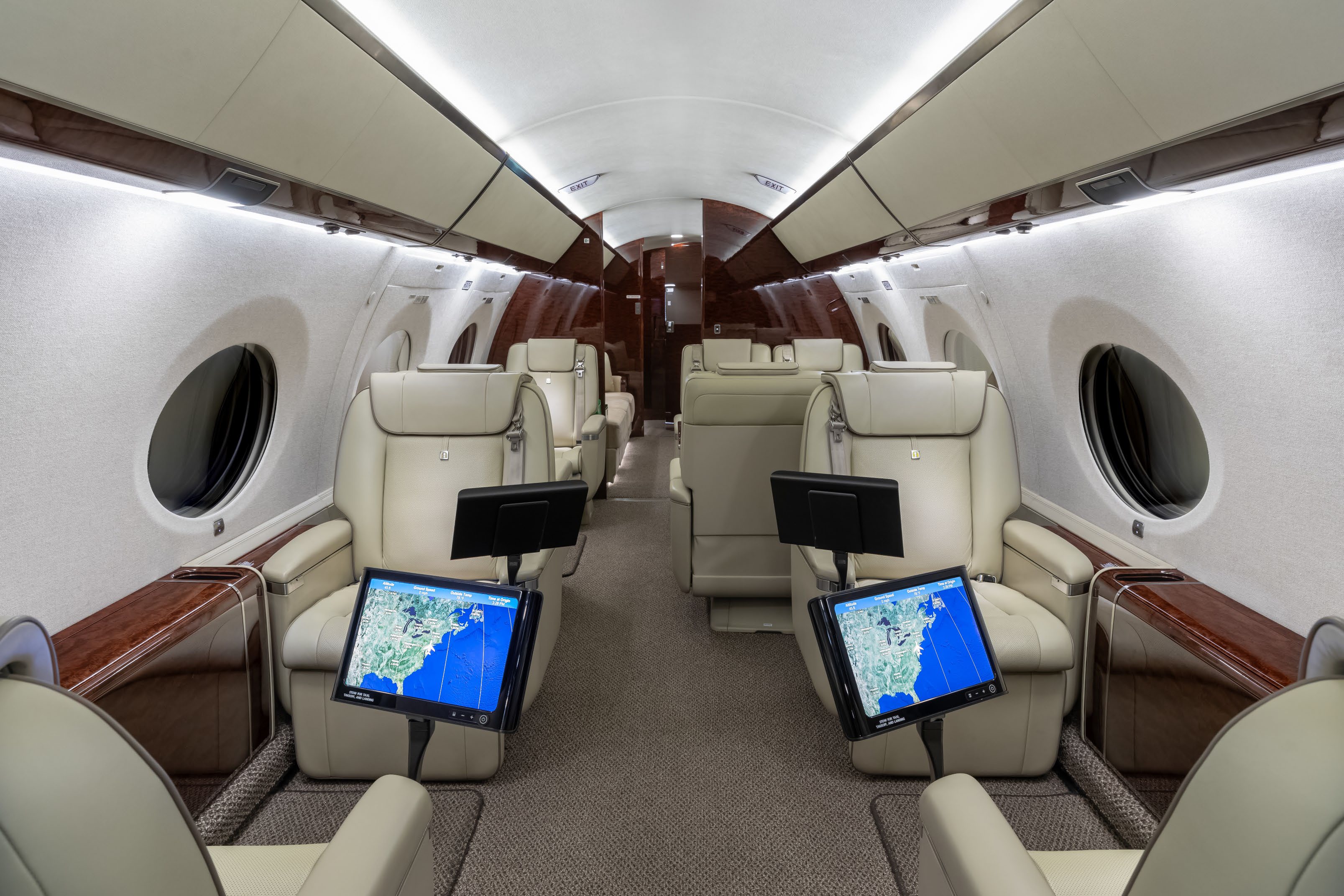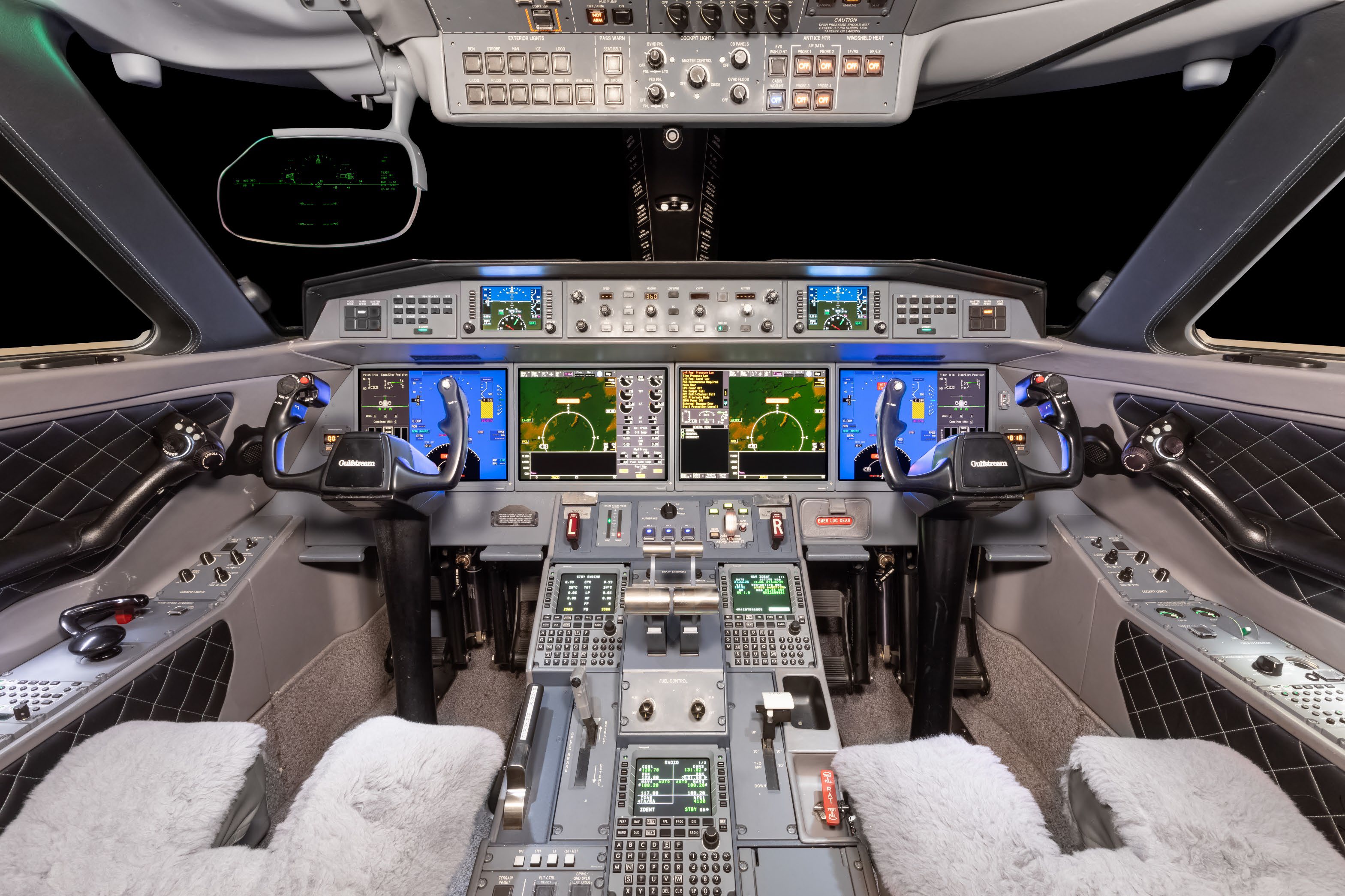 Gulfstream Plane View II/ Honeywell Primus Epic AIR DATA COMUTERS: Four independent multifunction smart probes (MFP) with self-contained computing platforms AUTOMATIC DIRECTION FINDER: Single Honeywell DF-855 ADF Module AUTO FLIGHT CONTROL: Dual Automatic Flight Guidance System COMMUNICATIONS: Triple Honeywell TR-865A VHF Receivers w/8.33 kHz spacing COCKPIT VOICE RECORDER: Universal CVR-120R Solid State CVR with RIPS CONTROLLER PILOT DATA LINK COMMUNICATIONS (CPDLC) DISTANCE MEASURING EQUIPMENT: Dual Honeywell DM-855 DME Module ELECTRONIC FLIGHT INSTRUMENT SYSTEM: Four Honeywell DU1310 LCD Displays EMERGENCY LOCATOR TRANSMITTER: Artex C406N ELT ENHANCED GROUND PROXIMETY WARNING SYSTEM: Dual Honeywell EGP-100 EGPWMS ENHANCED VISION SYSTEM: Gulfstream EVS II System FLIGHT DATA RECORDER: Single Universal Solid-State FDR-25 FLIGHT MANAGEMENT SYSTEM: Triple Honeywell NEXTGEN Multifunction Display Units GLOBAL POSITIONING SYSTEM: Dual GPS With Wide Area Augmentation System (WAAS) / LPV HEAD UP DISPLAY: Rockwell Collins HGS-6250 Head-Up Guidance System HIGH FREQUENCIES: Dual Rockwell Collins HF 9034A LONG RANGE NAVIGATION: Triple Honeywell LASEREF VI RADIO ALTIMETER: Dual Honeywell KRA-405B Radio Altimeter System TRAFFIC COLLISION ALERT AND AVOIDANCE SYSTEM: L3 TCAS II 3000SP TRANSPONDER: Dual Honeywell Mode S Diversity Transponders with Diversity WEATHER RADAR: Honeywell 3-D Weather Radar |