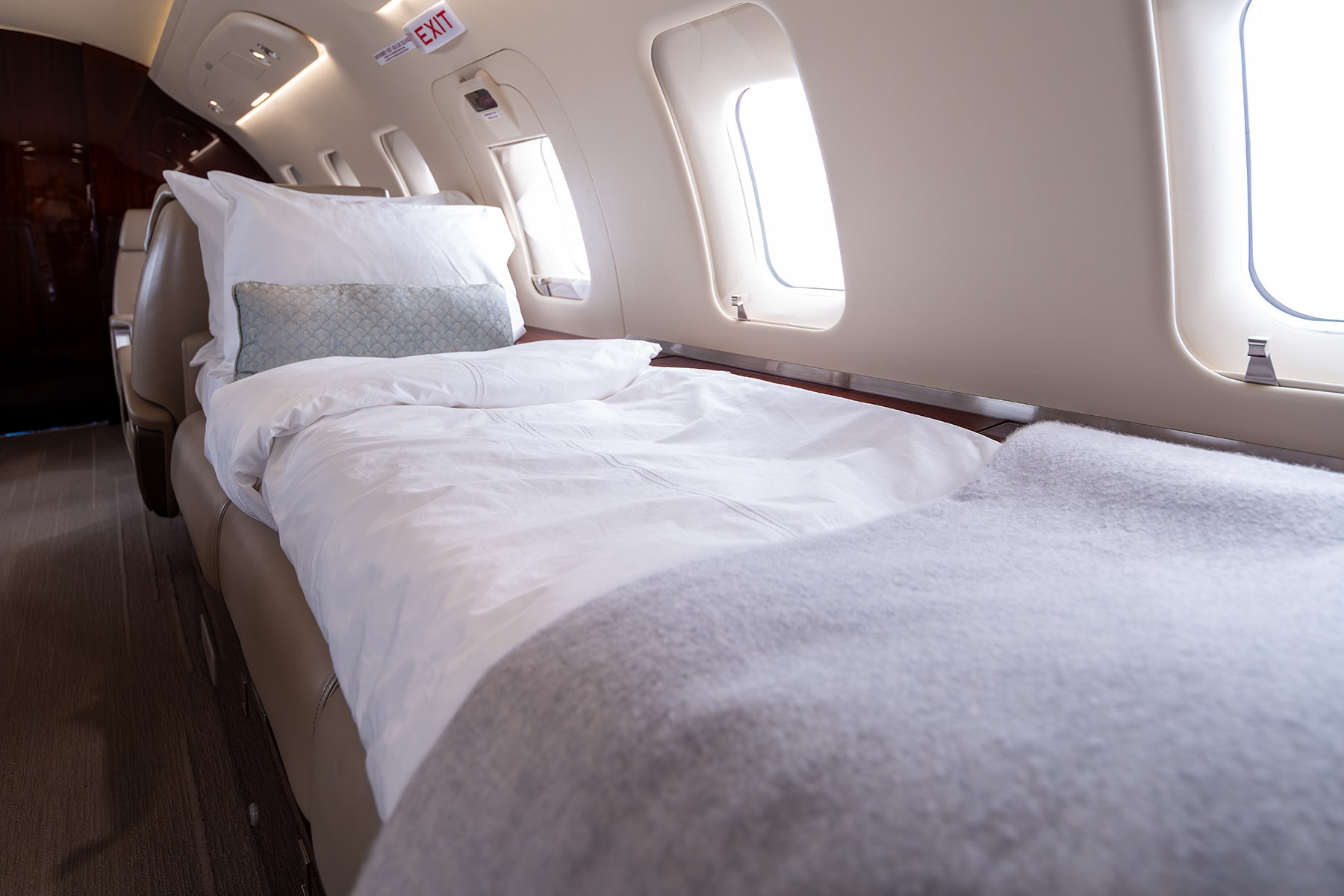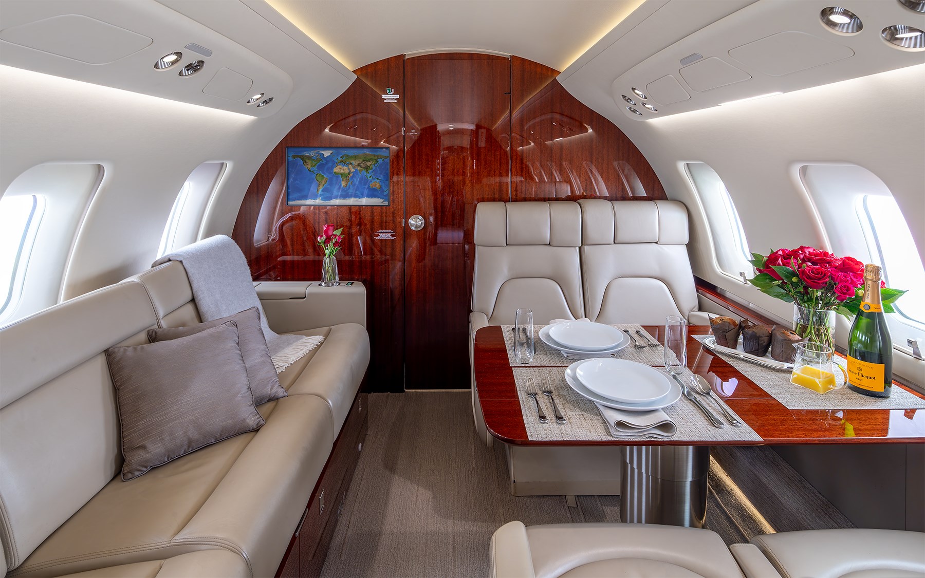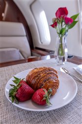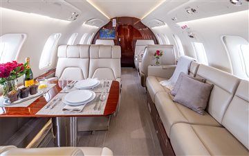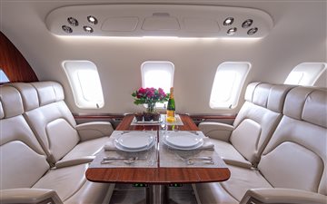 Completed January 2017 @ Bombardier This Challenger 650 is configured for twelve passengers and is Part 135 approved with a cockpit jump seat. The interior layout features a forward four-place club seating arrangement, followed by an aft left-hand four-place conference group opposite a fourplace divan, offering a versatile and spacious cabin designed for both productivity and relaxation. A forward right-hand galley is positioned opposite a wardrobe, and the cabin is divided by a forward bulkhead pocket door, providing added privacy between zones. An in-flight accessible baggage compartment is located aft of the lavatory for convenient access during flight, and 115 VAC/60 Hz universal outlets are installed throughout the cabin. The interior is elegantly finished with Makore Flame gloss veneer cabinetry, brushed nickel-colored hardware, and a medium graytaupe carpet. Passenger seats are upholstered in a sophisticated two-tone light and dark platinum leather while the headliner, PSU, and window panels are wrapped in a platinum-toned Ultraleather, creating a refined and cohesive aesthetic throughout the cabin. Onboard entertainment and cabin control are managed by a Lufthansa Technik nice HD Cabin Management System, which includes touchscreen controllers, USB ports, an HDMI input, Bluetooth wireless audio, Audio Video On Demand (AVOD), a Blu-ray player, dual 24-inch HD bulkhead monitors, and the niceview 3D moving map system. Connectivity is provided through Gogo AVANCE L5 Wi-Fi and Swift Broadband, with satellite voice communication supported by both Honeywell Aspire 100 Iridium and Collins SAT-2200 Inmarsat systems. The fully equipped forward galley includes a microwave, convection oven, coffee maker, espresso machine, sink, pull-out work surfaces, a gasper-cooled storage compartment, and ample custom cabinetry to support in-flight service. At the rear of the aircraft, the lavatory features an electric-flushing toilet, a mirrored vanity, and a sink, offering comfort and privacy on longer flights. |