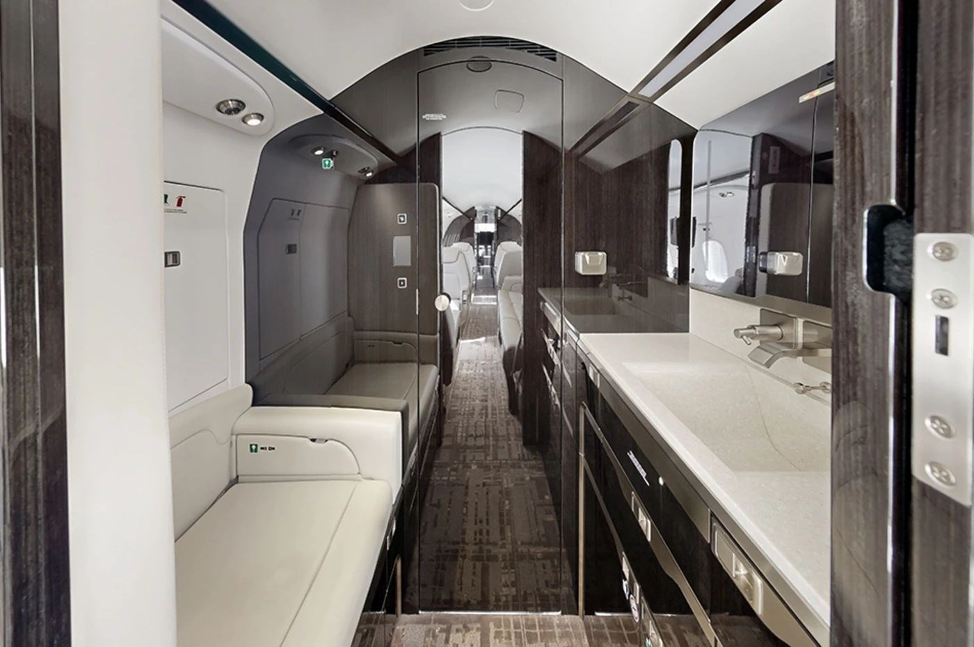 General information Bombardier Completion Center, Montreal, Canada, December 2018 Fireblocked; FAA, TCCA and EASA STC Ten (10) passenger seating including the belted lavatory seat Galley Forward RH galley Forward cabin The forward cabin features double club seating with four (4) executive seats in a club arrangement with two foldout tables Aft cabin Aft cabin consists of two (2) executive seats with a foldout table on the RH side and a three (3) place divan on the LH side Lavatory The lavatory is located aft of the main cabin Capacity Passengers: Up to 10 |