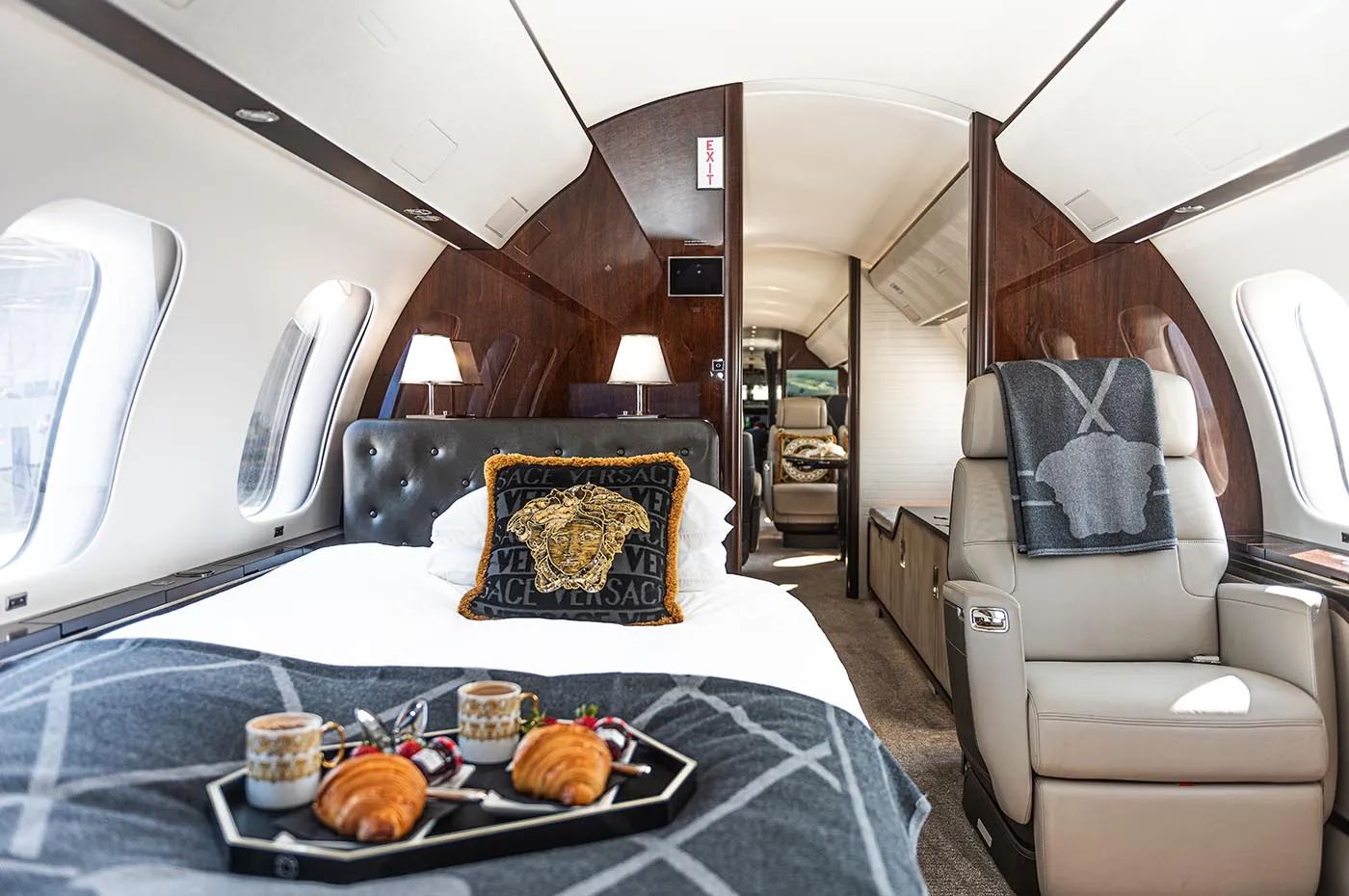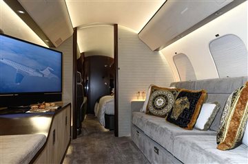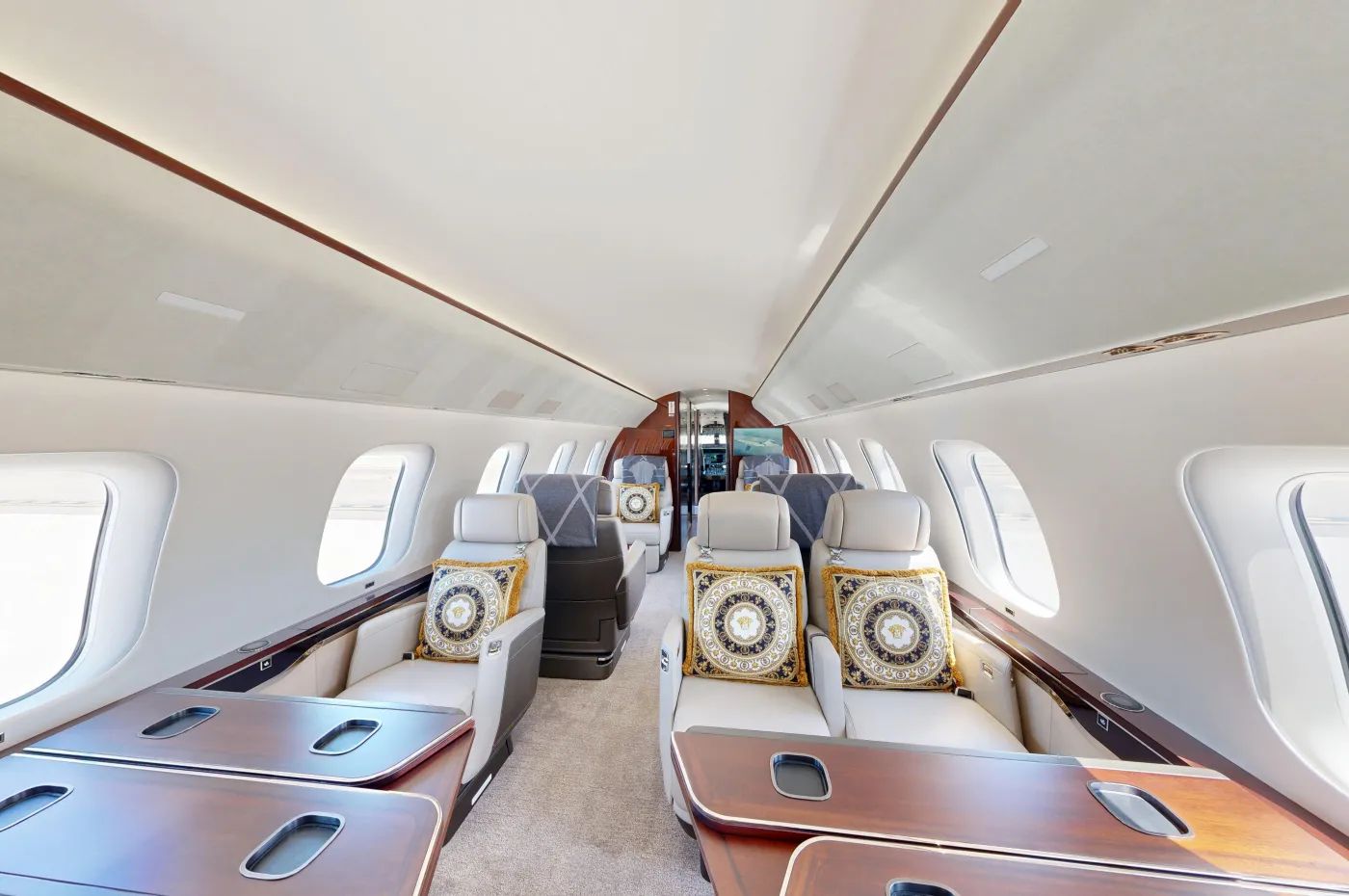 General information Bombardier Completion, Montreal, December 2018 Fireblocked; FAA, EASA and TCCA STC Fourteen (14) passengers plus one (1) jump seat and one (1) seat crew rest area. Jump seat and crew rest area for crew use only Crew and cabin seats reupholstered November 2021 BAS TUS New carpet and wood refinish November 2020 BAS TUS Entrance Galley is located RH forward Also featured is a fwd crew lavatory and crew rest area Club suite Club Suite (zone 1) features four (4) lounge seats with two (2) foldout tables Conference suite Conference and Dining Suite (zone 2) features two (2) place forward facing and one (1) place aft facing dining seats w/ table on the LH side and two (2) aft facing and one (1) forward facing dining seats with a table on the RH side Entertainment suite Entertainment Suite (zone 3) features a three (3) place (2 place for T/T/L) full-berthing divan on the LH side and a credenza with pop-up monitor on the RH side Principal suite Principal Suite (zone 4) features a bed on the LH side and one (1) club seat with a foldout table on the RH side En suite Aft full lavatory Capacity Passengers: Up to 14 |