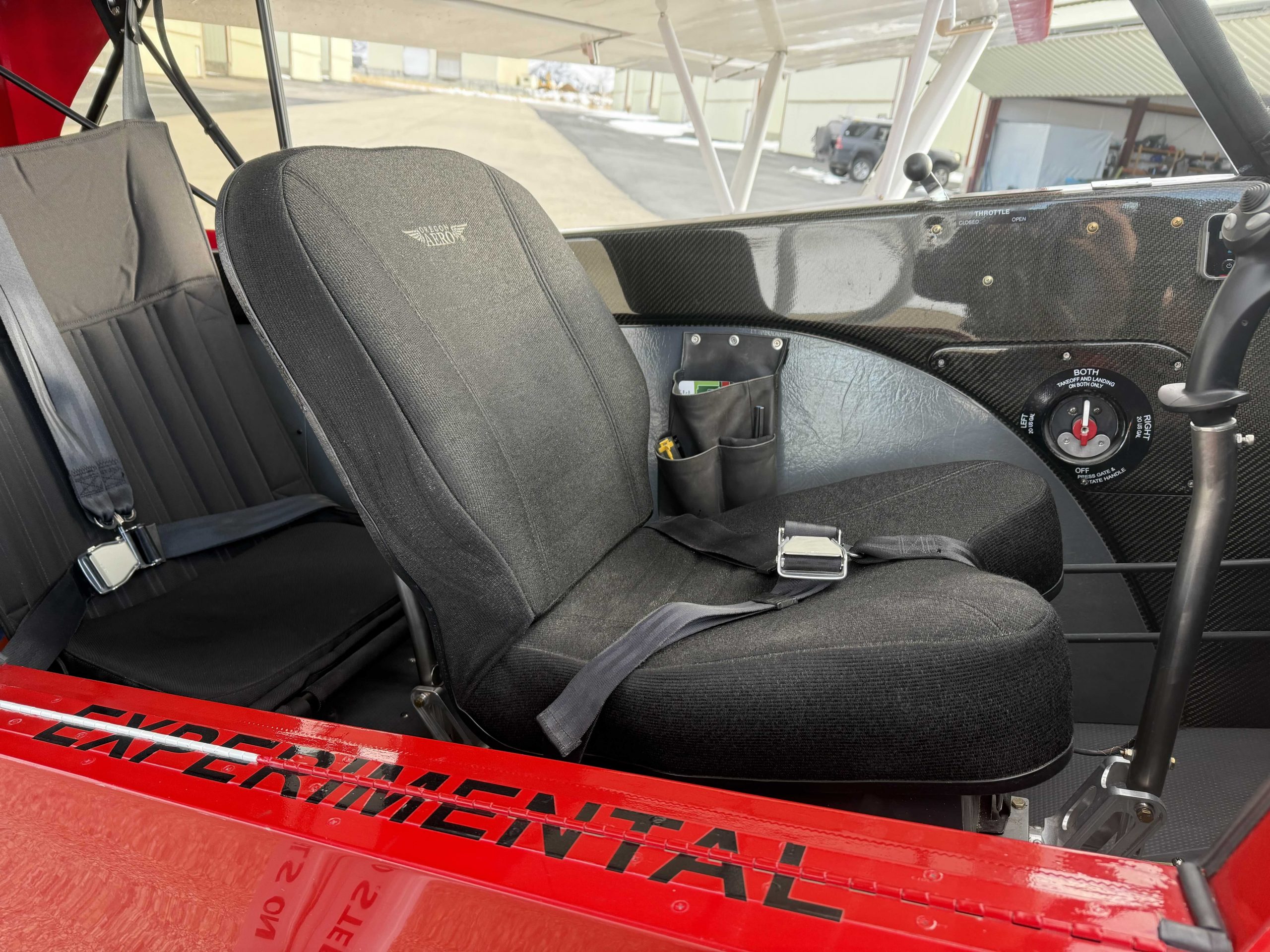 Interior Rating:9 Custom upgraded Oregon Aero Pilot Seat Upgraded Tosten pilot grip stick Extended Baggage compartment with access door Upgraded rudder cable covers in complete baggage area Upgraded baggage area fabric liner for finished look Cargo Baggage Restraints Foldable and storable rear seat Headset hooks Halon Fire extinguisher Cup/Bottle holder for Pilot Map pocket Defroster Fan Map Light |