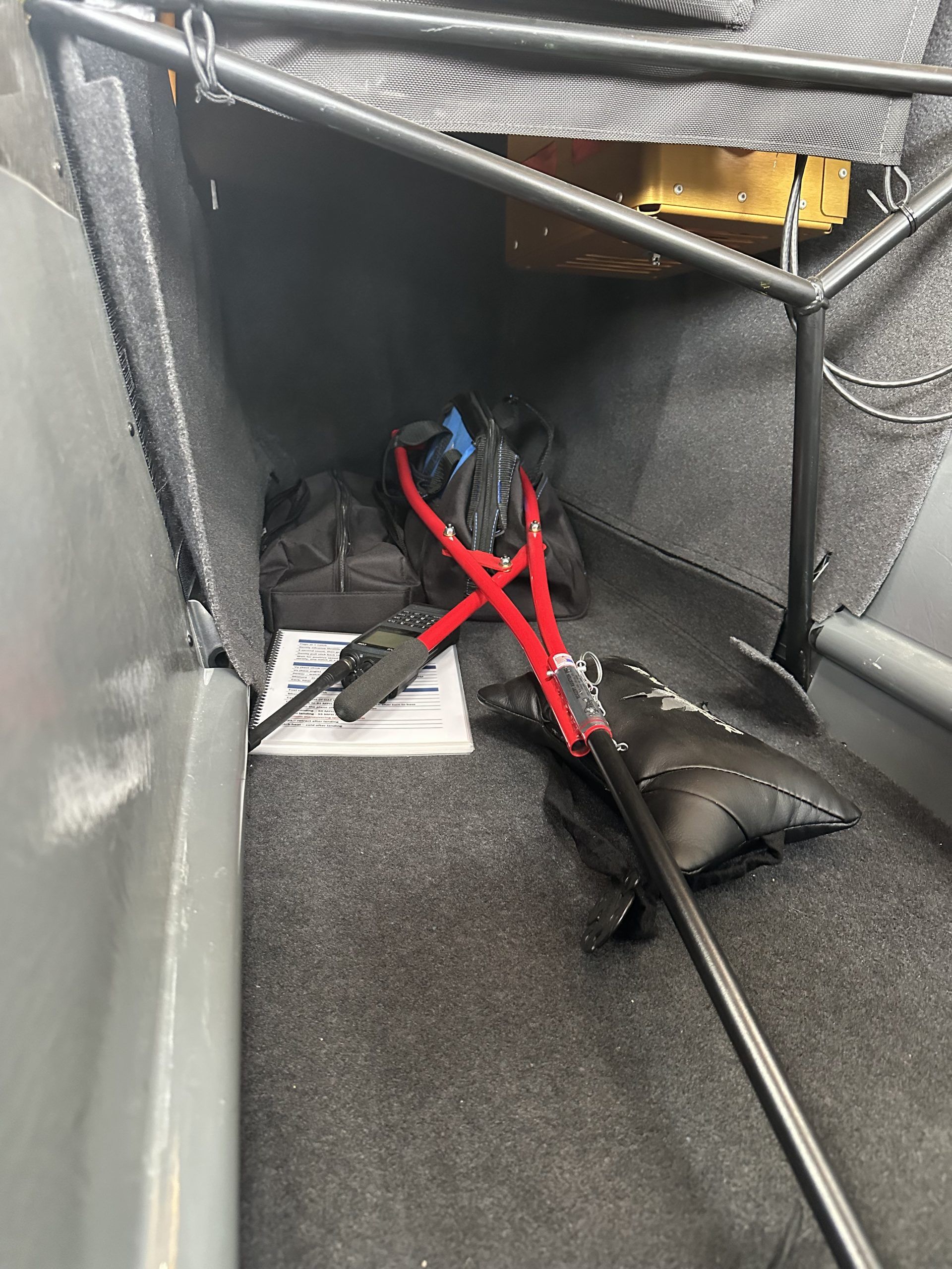 Interior Rating: 9+ Upgraded Oregon Aero Leather Seats Upgraded rear seat lumbar/back cushion Halon fire extinguisher in front of pilot seat Grip covered pilot control stick Upgraded Rear seat trim control Extended Baggage compartment with access door Upgraded rudder cable covers in complete baggage area Upgraded baggage area fabric liner for finished look Foldable and storable rear seat Headset hooks Cup/Bottle holder for Pilot Map Light |