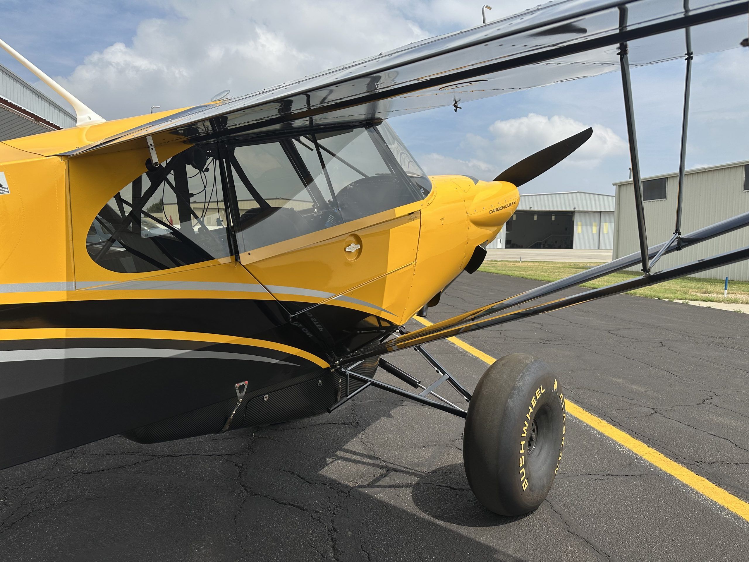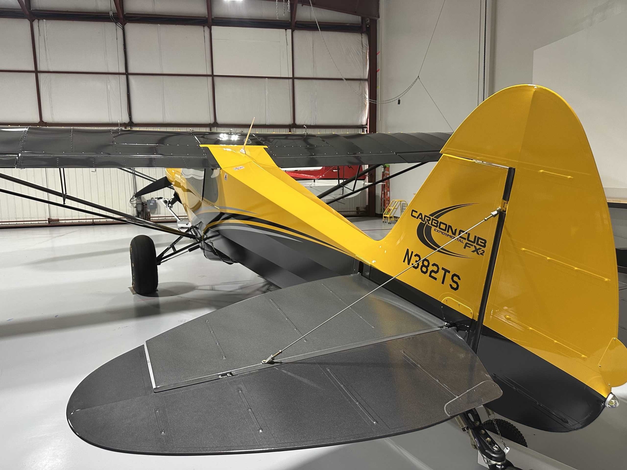 Fuel Capacity: 40 gal usable Extended Range Empty Weight: 1157 lbs Gross Weight: 1320 lbs /1865 lbs Upgraded cowl with improved engine cooling and cabin heating Upgraded nickel leading edge 80 x 50 Catto prop 40g usable extended range fuel tanks Cargo Belly pod (removable) Lightweight LED nav and strobe lights, with Wig-Wag Landing Lights Gap Seals on Elevator and Rudder BRS Chute with front and rear pull handles; can be removed Medium weight Stits Polyfiber fabric Fuel sight gauges Inertial Reel 4 Point seat belt system Complete 4130 Steel reinforced fuselage Super Cub airfoil – USA35(B) New left horizontal stab due to hangar rash Vortex Generators for sub 32 mph stall speeds 1320/1865 max gross weight; 1157 empty |